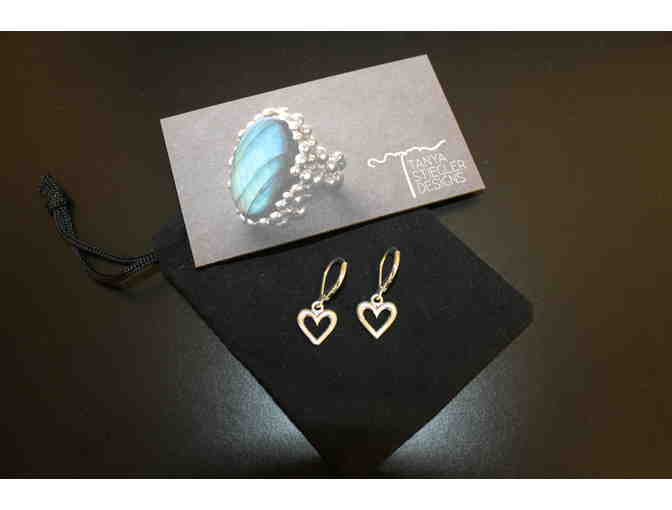One pair of sterling silver open hearted earrings on lever backs. Made by local artist Tanya Stiegler.