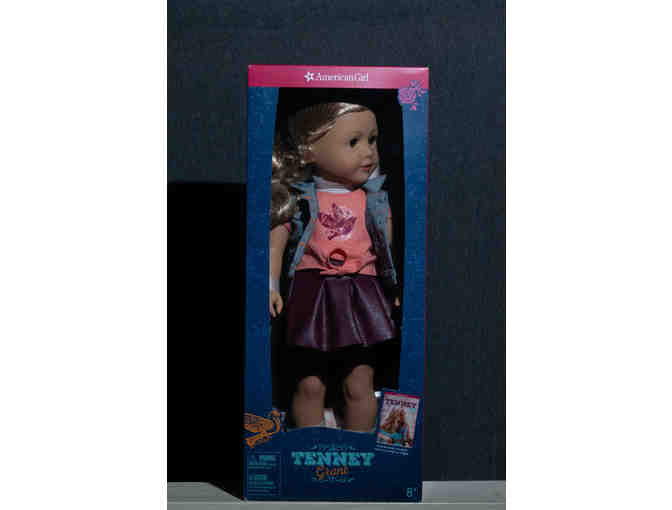 The 18" Tenney doll has light brown eyes that open and close, freckles on her nose, and long, curly blond hair. Tenney’s unique hand positioning helps her hold her guitar, banjo, and pick! She arrives in a graphic tee, denim vest, faux-leather skirt, and ankle boots. Also included are a woven bracelet and the Tenney paperback book. This brand-new doll and book are in the box.