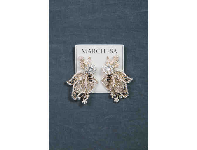 Made by Marches, these gold crystal leaf earrings are a rare find.