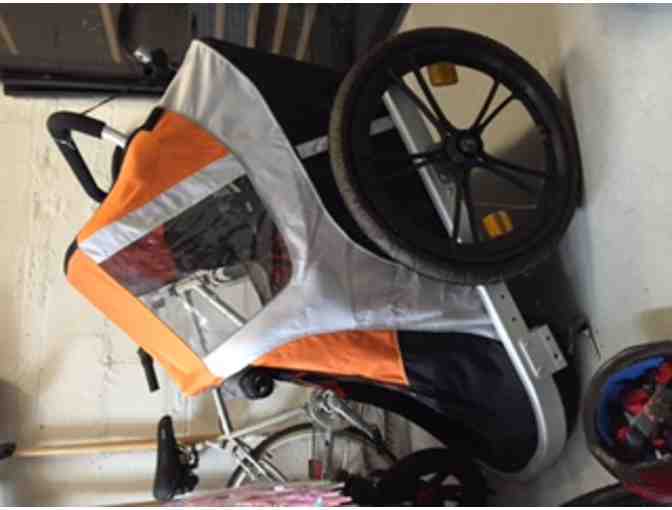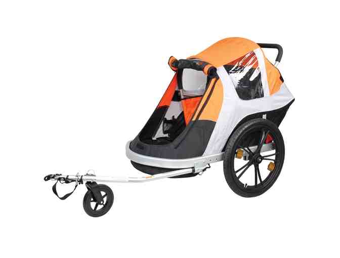 Bid on this Voyager Transit Flex 2 bike trailer that can be attached to any adult bike. It is a safety orange color, and fits two children comfortably!