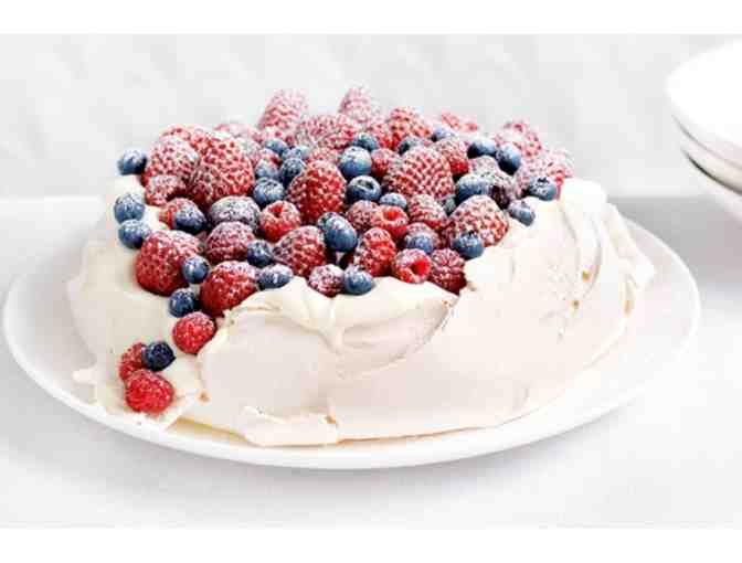 This classic Australian meringue based dessert will include whipped cream topping and your choice of strawberries, blueberries, or raspberries (or combination) on top.
