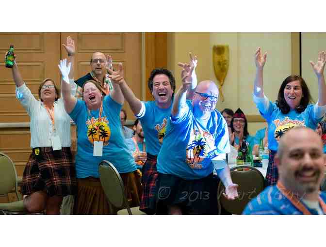 Then bid on this item - we'll save you your very own table front and center, right in front of the Chairman's stage. And we'll even include a handful of drink tickets to help get your trivia juices flowing.