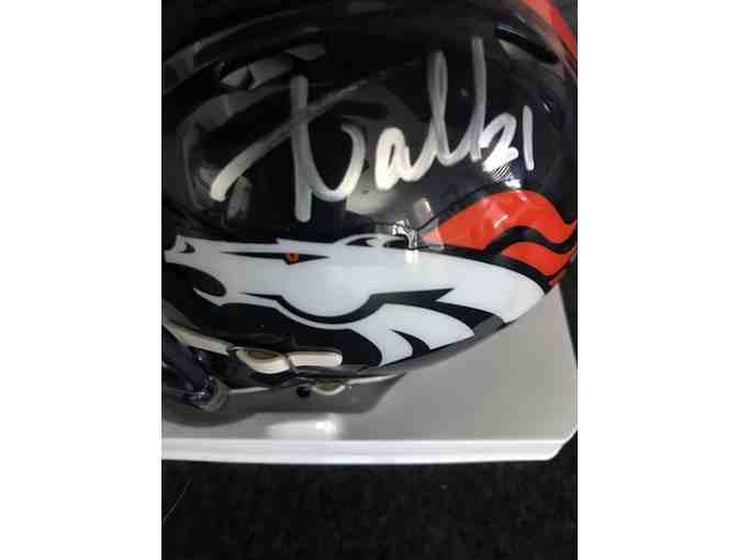 Mini football helmet autographed by Denver Broncos' Aqib Talib.