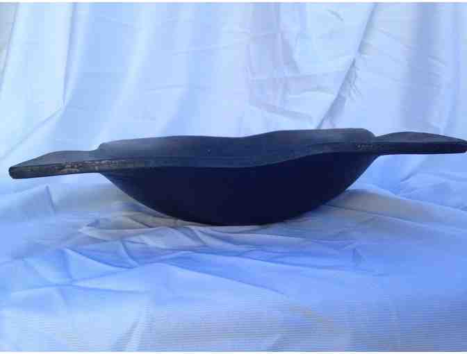 This hand forged heavy steel bowl comes from The Blacksmith Shop in Ferndale, CA. Crafted by artists Jon and Seri Sargity. The bowl measures 9" across and 2.5" deep. It is 1/4" thick steel.