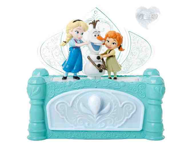 Capturing one of the most beloved scenes in a child's favorite film, the Disney Frozen Do You Want To Build A Snowman Jewelry Box gives a kid an extra-special place to stash treasures. Experience the magic of sisterhood as young Anna and Elsa come to life and build the loveable snowman Olaf on top of the Disney Princess kid jewelry box; a collectible heart ring is included.