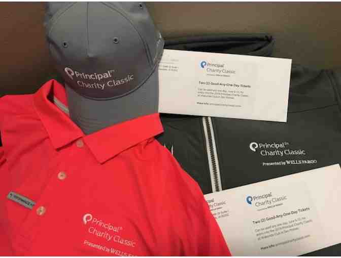 Plan to attend the 2018 Principal Charity Classic at Wakonda Country Club in Des Moines. Package includes four (4) Good-Any-One-Day tickets good any day June 6-10, golf hat, Fiji brand XL golf shirt, PGA brand Large jacket. Event details at www.principalcharityclassic.com