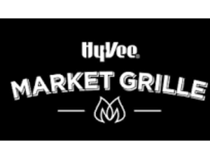 $50 HyVee Market Grille gift card, growler with one free fill, glass beer mug, one copper moscow mule cup with a bottle of ginger beer and two shots of vodka, all accompanied by a package of belgian chocolate.