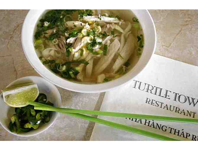 Turtle Tower Restaurant offers gourmet Vietnamese dishes prepared with love and care to preserve the flavors of Northern Vietnam. They use only fresh free-range chicken, high quality beef, and their noodles are always freshly made.