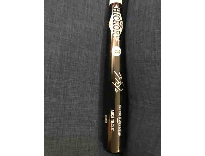 Baseball bat autographed by Mike Trout, professional baseball player for the Los Angeles Angels of Anaheim of Major League Baseball (MLB). Comes complete with an MLB hologram verifying authenticity and donated directly from the Los Angeles Angels!