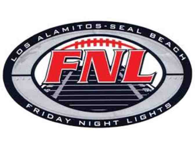 Winner is entitled to one (1) Registration for Friday Night Lights Football in Seal Beach/Los Alamitos, CA. Includes one (1) adult FNL t shirt, plus a FNL logo sticker.