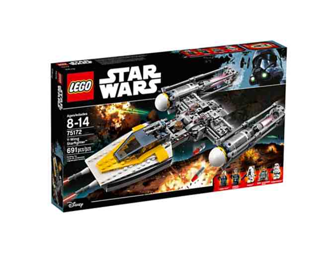 75172 - Expand your Rebel fleet with the iconic Y-Wing Starfighter. The unmistakable workhorse of the Rebel Alliance has been faithfully reproduced with LEGO® bricks and features many play starters, including retractable landing gear, an opening minifigure cockpit, rotating guns, dual spring-loaded shooters, and gearwheel-operated bomb-drop function. This great model also comes with a weapons loader with turning crane and extra ammo for even more immersive play. Includes four minifigures and a droid figure.