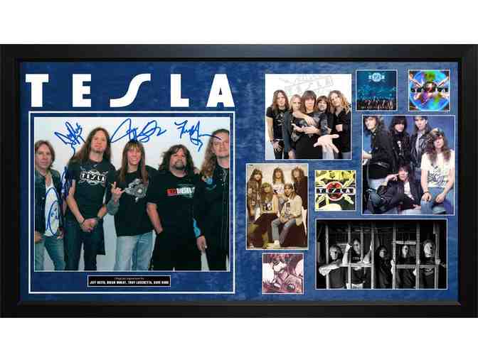 Tesla Band Group Photo Autographed Custom Display Photo AFTAL UACC RD