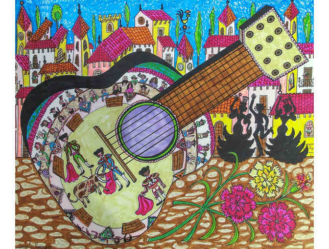 guitar music painting on mat board