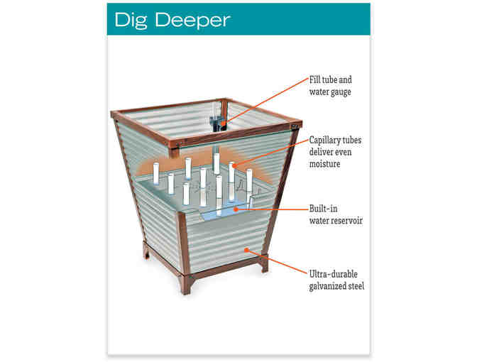 Dress up your porch, patio, deck, balcony or poolside! Aluminum trim with a faux wood finish gives this ultra-durable, galvanized planter a modern edge. The patented watering system uses capillary tubes to deliver water from the built-in reservoir to keep plant roots consistently moist. This versatile planter is ideal for vegetables and herbs, or use it to create a dramatic ornamental planting.
