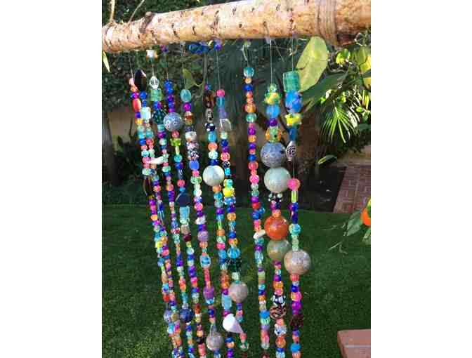 Colorful windchimes created from beads and bells, as well as keys and shells that the kids collected. And the kids helped with the beading! This handmade garden decor will bring beauty, as well as sweet, sweet melody, to your backyard.