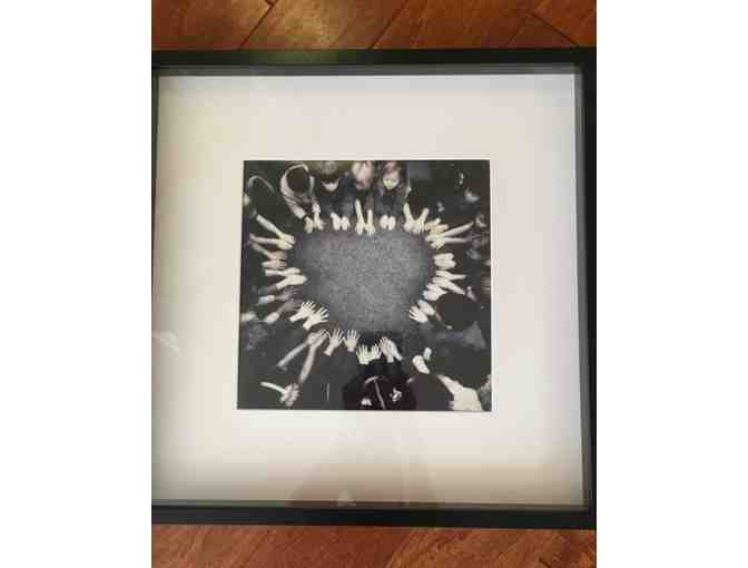 A framed black-and-white photograph, literally created by tiny hands. You might cry happy tears at its sweet beauty.