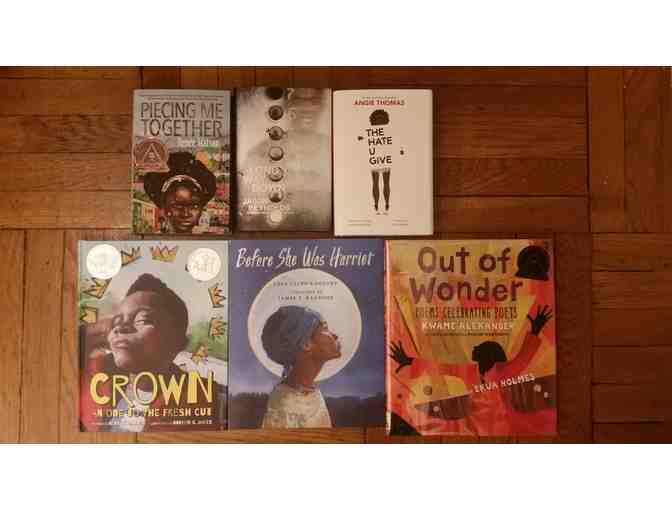Crown: An Ode to the Fresh Cut illustrated by Gordon C. James, written by Derrick Barnes (won honor awards for both illustration and writing, but only one copy of this book is included in the basket)