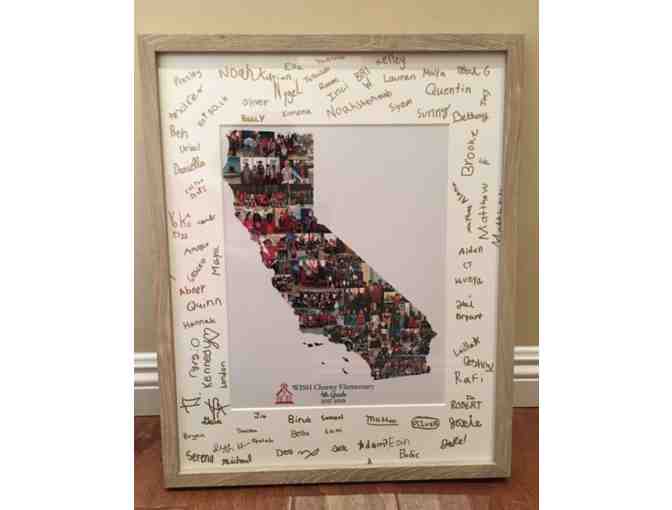 The 4th graders have spent this year learning about and exploring California as part of their Social Studies curriculum. They've captured these memories in photos that have been pieced together to create a collage in the shape of our state. Every student has made their mark and signed the mat of this unique framed collage.