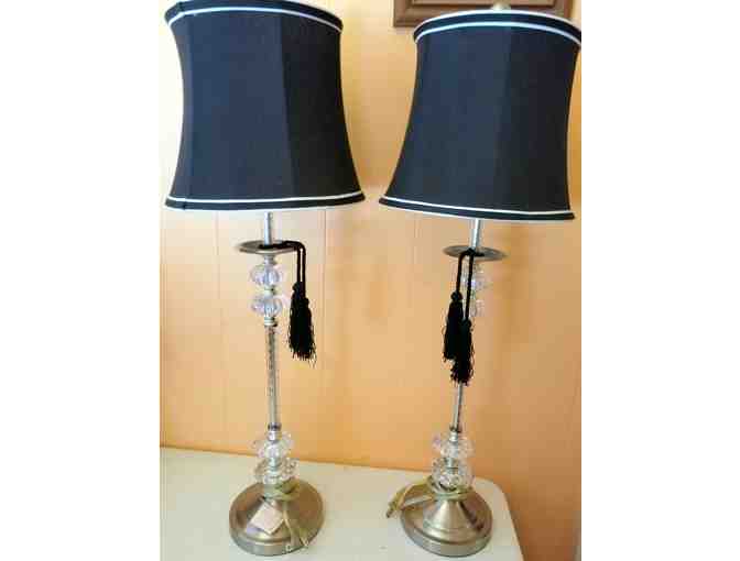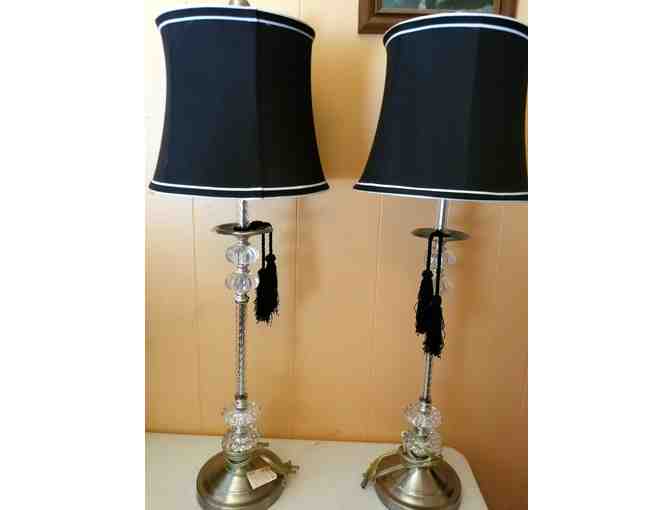 Lamps are brand new. they are 30 inches high Shade is 8.75 long and 30 inches in Diamater.