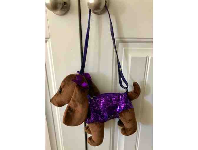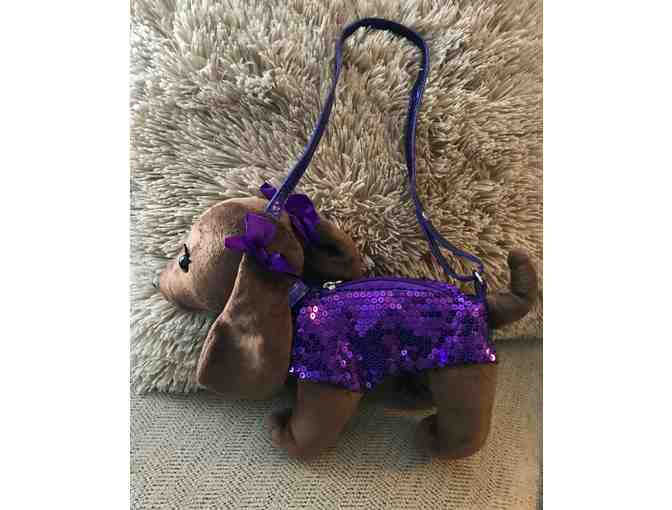 Adorable Plush Brown Doxie Purple Sequin Purse