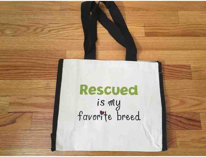 Perfect bag for any Rescue Dog Lover! Green and Black Lettering with Black Handles