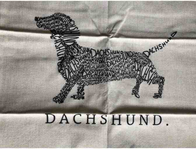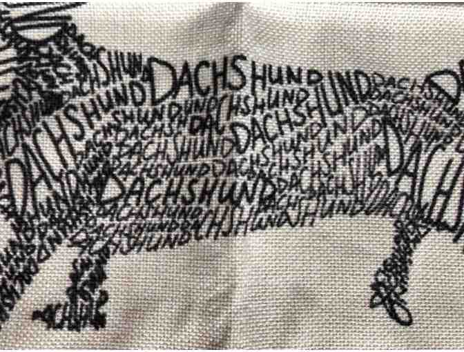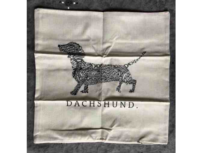 The dachshund on the pillow cover is made up of the word "Dachshund". It measures 17X17". Would look good on any couch, chair, bed....really anywhere!