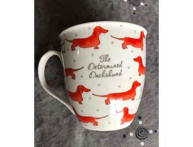 This adorable mug speaks volumes about the dachshund...we all know they don't give up if they want something!