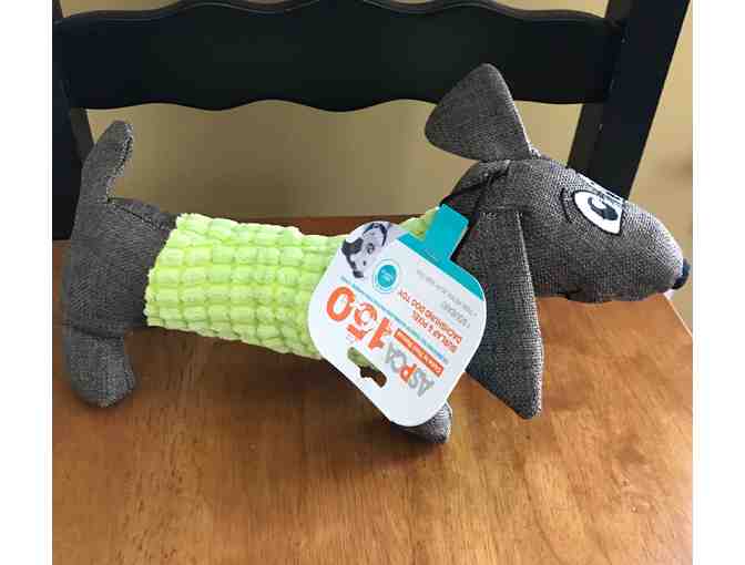 Brown and Lime Green Plush Doxie Squeaky Toy