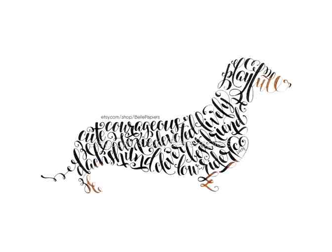 Man's Best Friend, the Dachshund! This is a print of Calligraphy Artwork in the shape of a doxie!
