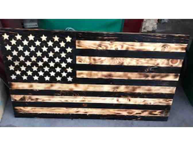 This rustic wood American flag is a premium handcrafted item. Several hours of work, with great attention to detail, go into making each wood flag. This rustic wood American flag is a conversation piece and is a stunning display of American heritage for your home.