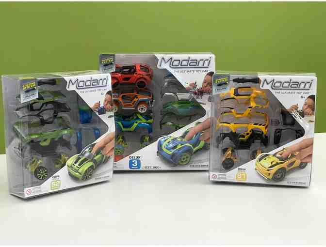 Modarri encourages open-ended play patterns, resulting in a much higher engagement with our toys. With only a few Modarri cars, it’s possible to spend multiple hours just taking cars apart, switching components, and building them in new ways from your imagination. Three cars provide over 235,000 different car combinations to explore.