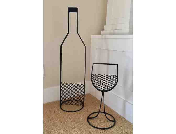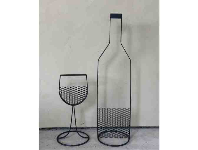 Wine Bottle & Glass, Metal Sculptures by Lawrence Jonas