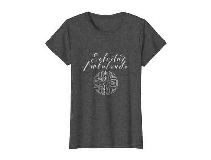 Solvitur Ambulando - "It is solved by walking" Inspirational St. Augustine quote on a soft, comfortable heather grey t-shirt with the Chartres labyrinth pattern. Winning bidder may choose their size. Comes in women’s S - XL.
