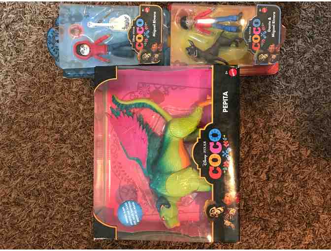 This Disney Pixar Coco Figurine Bundle contains Pepita (retails for $20), Dante & Miguel (retails for $10) as well as Miguel Rivera (retails for $10).