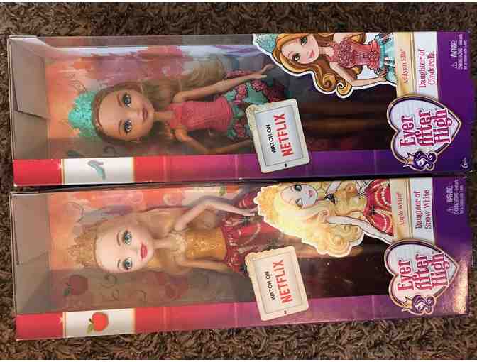 This bundle includes two (2) Ever After High dolls: Apple White, Daughter of Snow White and Ashlynn Ella, Daughter of Cinderella, each retails for $15.