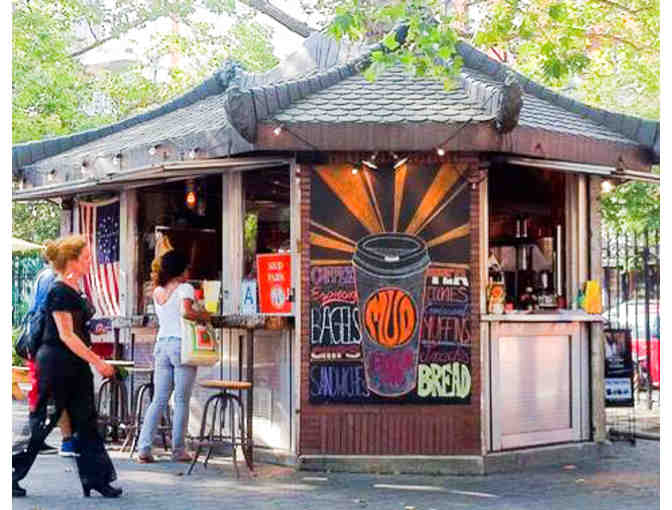 A $50 Gift Card to Mudpark (located outdoors in the kiosk at 1st Street & 1st Ave), along with a bag of 12 oz Mudtruck Coffee and a Stainless Steel Mud Travel Mug.