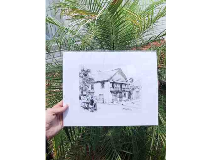 The item up for bid is a beautiful print of historic downtown St. Augustine. It would be a perfect addition to your home! The piece is 15x11.