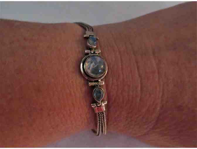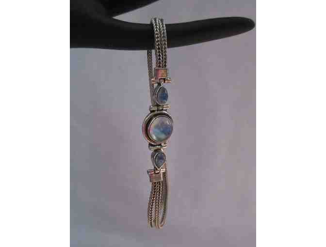 An artisan craft piece, with your eye drawn to the opal style detail in the center, this bracelet will bring complements!
