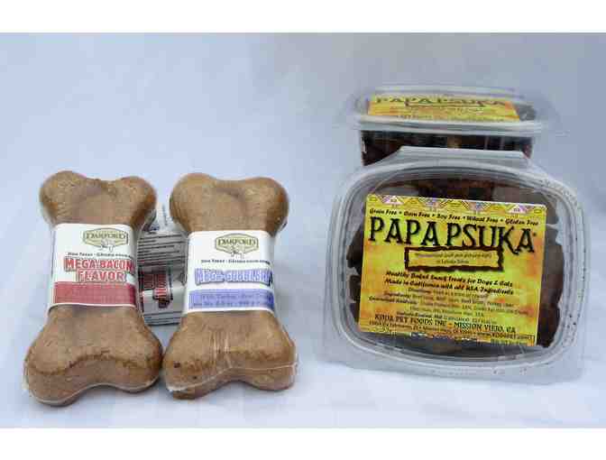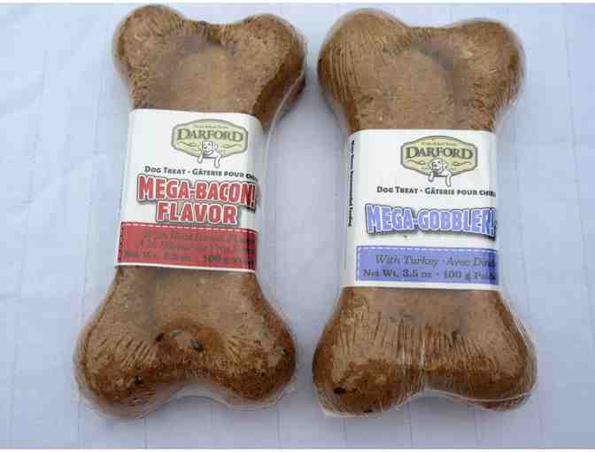 Two Mega-Bacon Jr Flavor and two Mega-Gobbler Jr dog bones by Darford