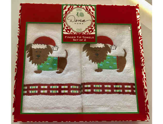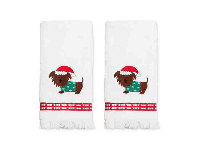 Christmas Pup 2-Pc. Cotton Fingertip Towel Set -- New