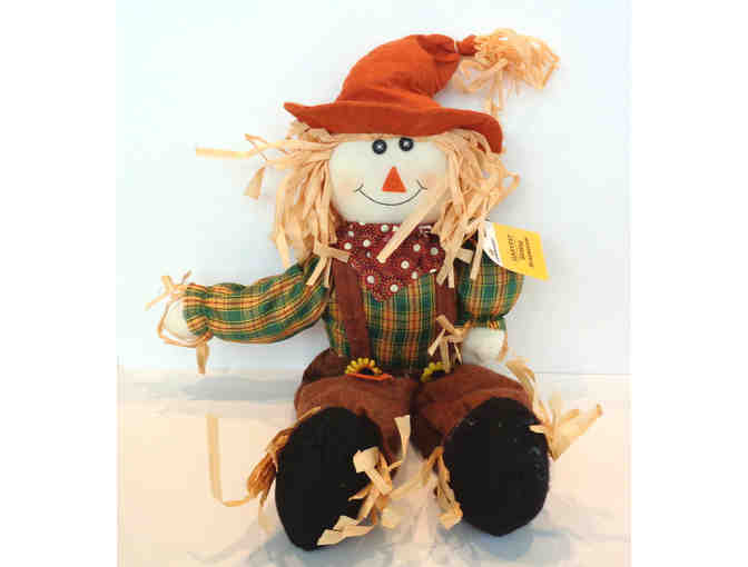 Fun for the holidays. Scarecrow is decorated with buttons, felt, straw, and more. Measures 20" tall.
