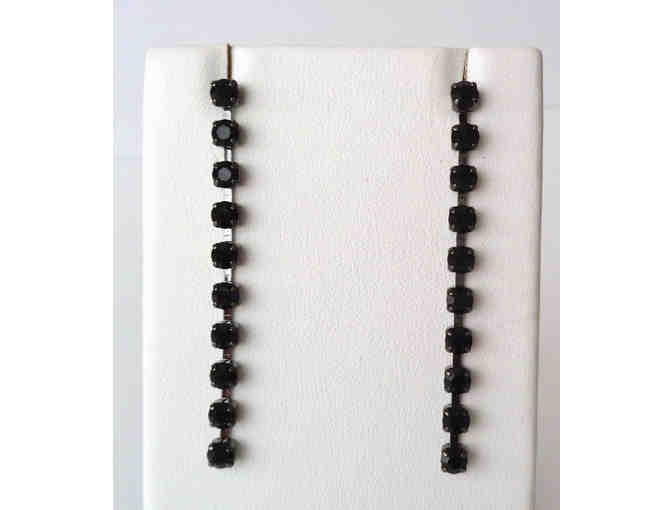 Pretty bar dangle earrings with black crystals. Measures 2.25" long. Stud backing.