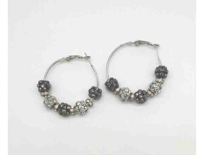 Pretty pair of earrings with 5 balls of marcasite in charcoal & silver colors on a 2" hoop. Nice!