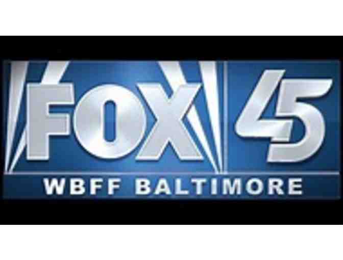 You and seven guests are invited to explore Behind-the-Scenes of FOX45 Morning News. Observe the live broadcast and meet FOX45 Morning Anchors Patrice Sanders, Tom Rodgers, and Megan Gilliland. Visit the newsroom and master control and learn how FOX45 brings you local news all morning! You'll have a unique opportunity to take your photo as a "future FOX45 reporter" as you sit at the anchor desk, in Traffic Tracker, or Weather Authority Center.