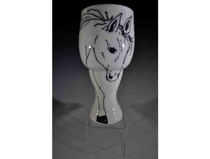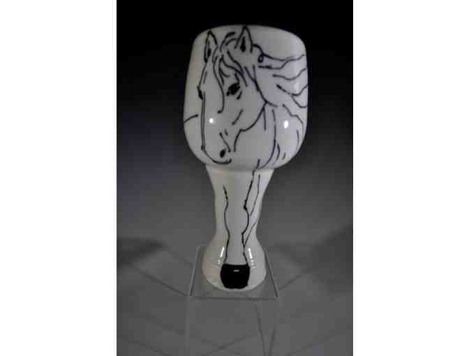 Two white porcelain goblets with horse image by Kindred Spirits Pottery