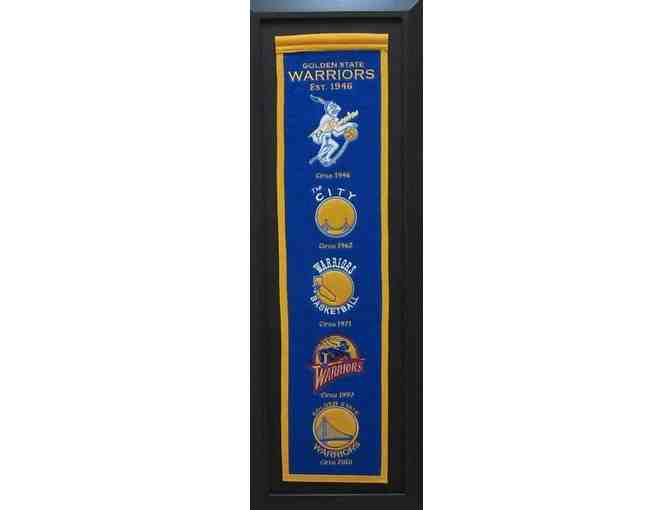 Framed 10x34" Golden State Warriors banner finished product with frame is 13.5"x37.5"