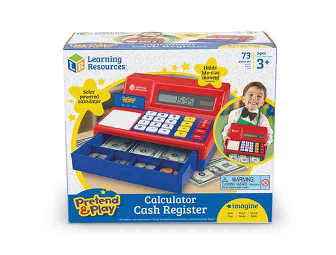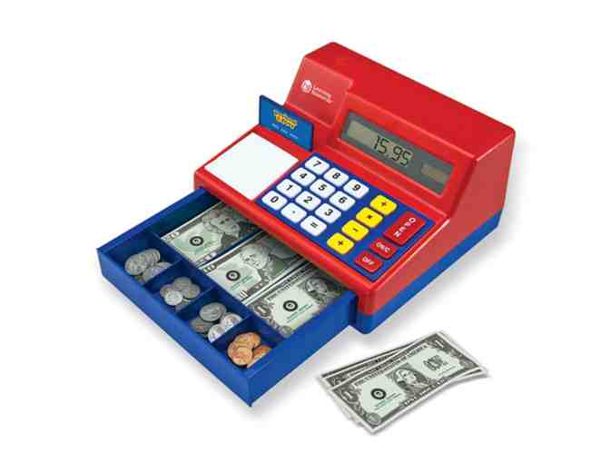 This award-winning cash register is the perfect addition to any pretend store! Encourage beginning math and calculator skills while providing lots of opportunities for imaginative play. Features a built-in solar calculator that helps familiarize children with the use of a calculator. They’ll also learn currency denomination and have fun handling life-size money. Large buttons on the keypad are easy for little hands to press and the cash drawer makes a “cha-ching” sound when it opens.