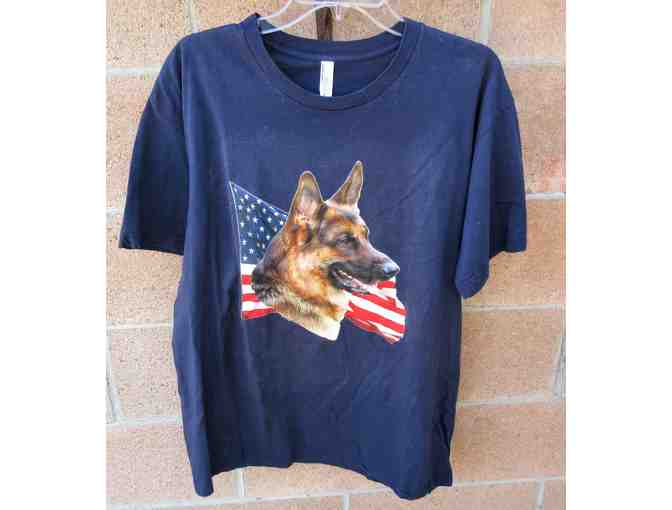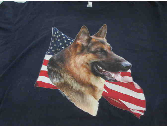 Wear this navy t-shirt with pride to show your love for the USA and the German Shepherd.