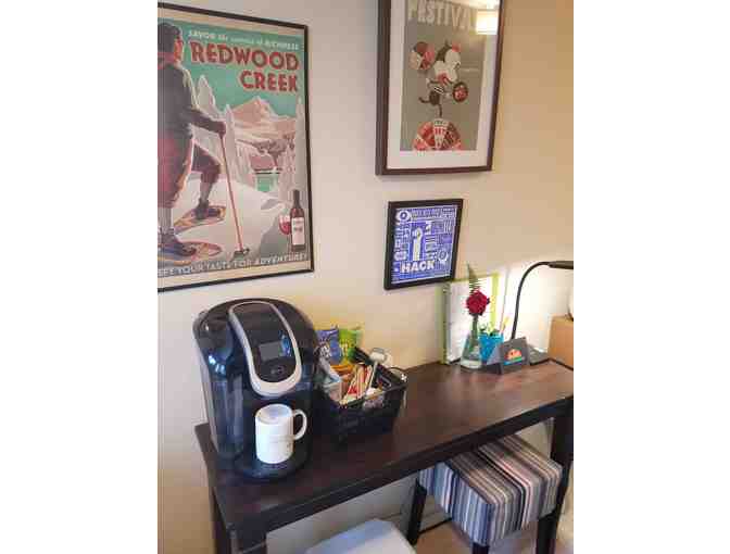 Enjoy your own private cottage in our almost always sunny backyard garden. This cozy studio cottage with an integrated bathroom is complete with twin bed/loft, mini fridge, k-cup coffee maker, variety of snacks/beverages and tv (local channels). Hand soap, shampoo/conditioner, shower gel available. Perfect space for 1 person.