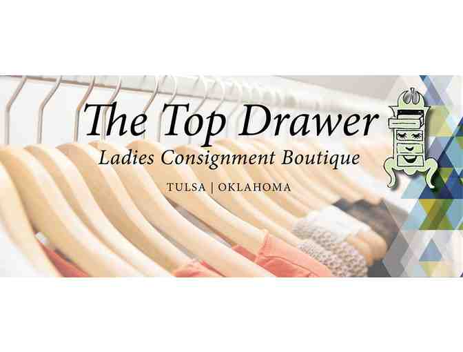 Enjoy a $50 gift certificate to The Top Drawer Consignment, a luxury consignment boutique specializing in women's designer apparel. Located at 3303 E. 32nd Place in Tulsa, The Top Drawer is open 10 a.m. - 5 p.m. on weekdays and 10 a.m. - 4 p.m. on Saturdays.